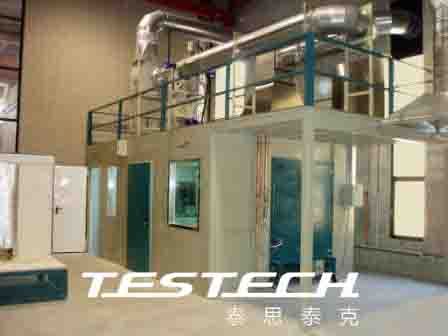 试样放置在位于排气系统之下的移动推车上,试样的燃烧反应可自动显示并可视。机械上是通过计算热释放率 (H.R.R),烟释放率(S.R.R)来评估燃烧特性,而其它物理特性则由视觉观察来评估。SBI的测量范围,火势增长速度指数(FIGRA)是**代表性的测量因素;此外,具有代表性的测量因素还有耗氧量,CO,CO2生成量,烟增长速度指数(SMOGRA)等。**热释放速率可达到 1MW。